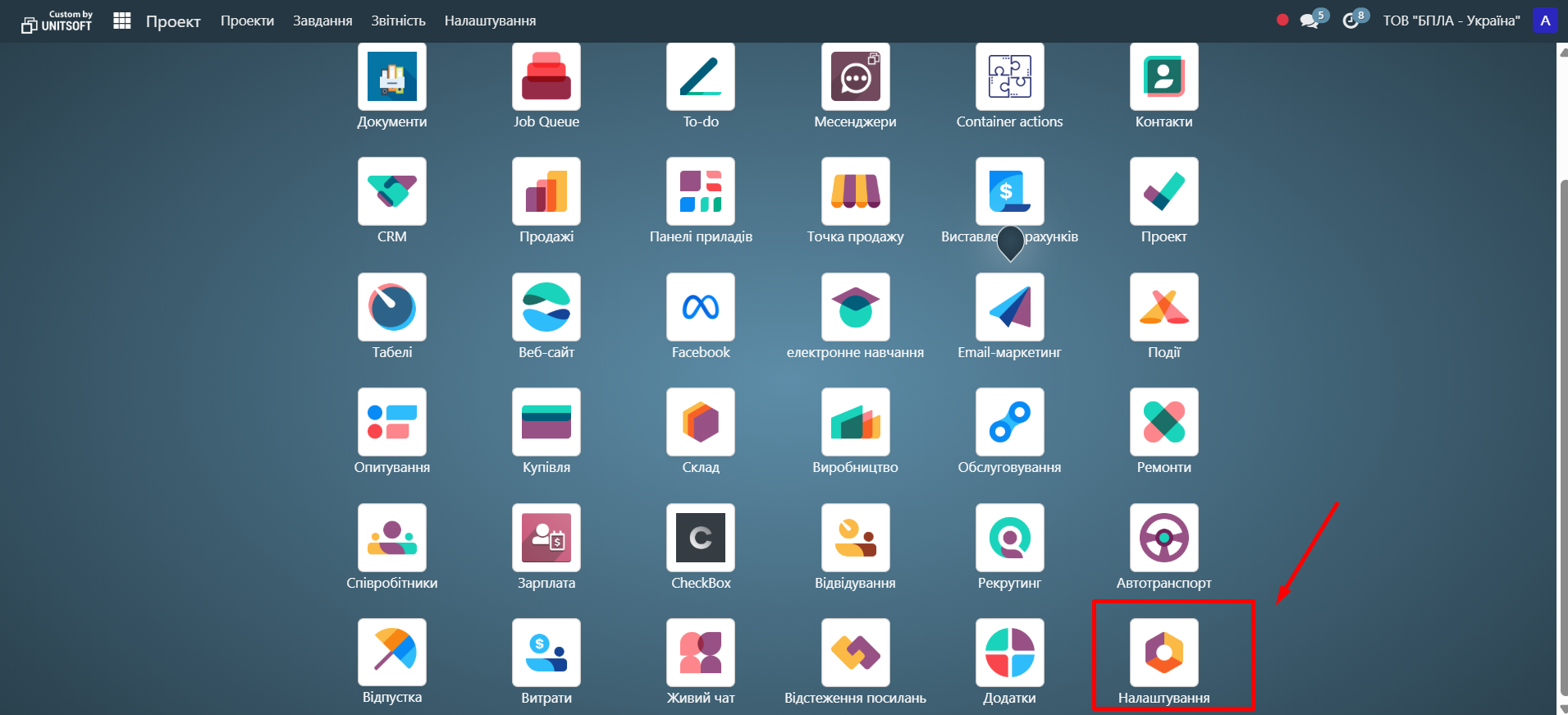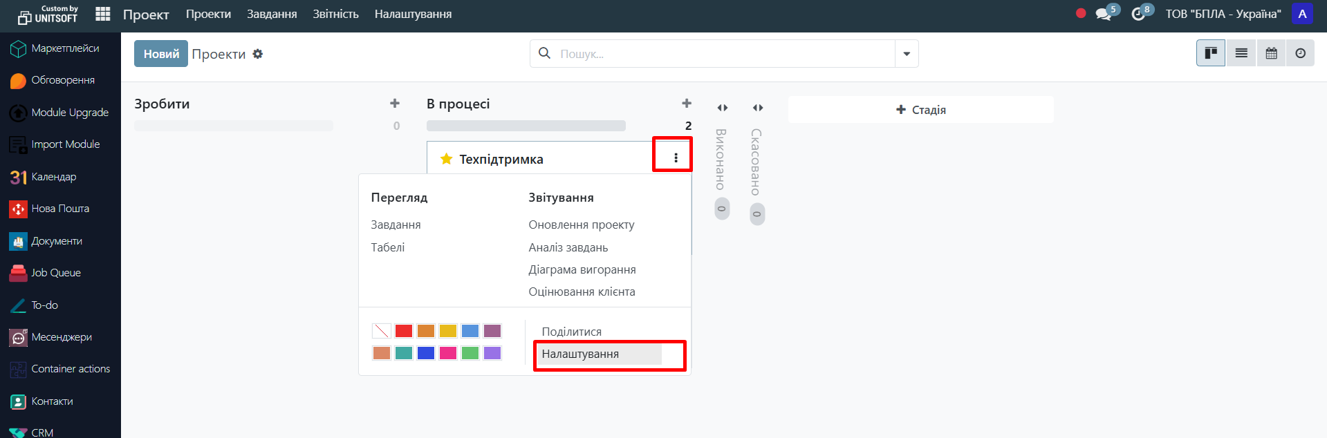 1. Перейдіть у модуль «Налаштування», розділ «Проекти»: