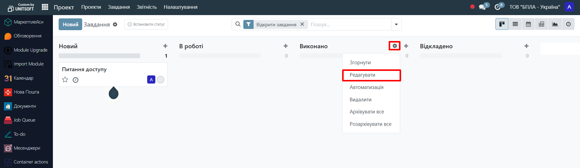 1. Відкрите проект. Для потрібної стадії натисніть на знак шестерні - «Редагувати»: