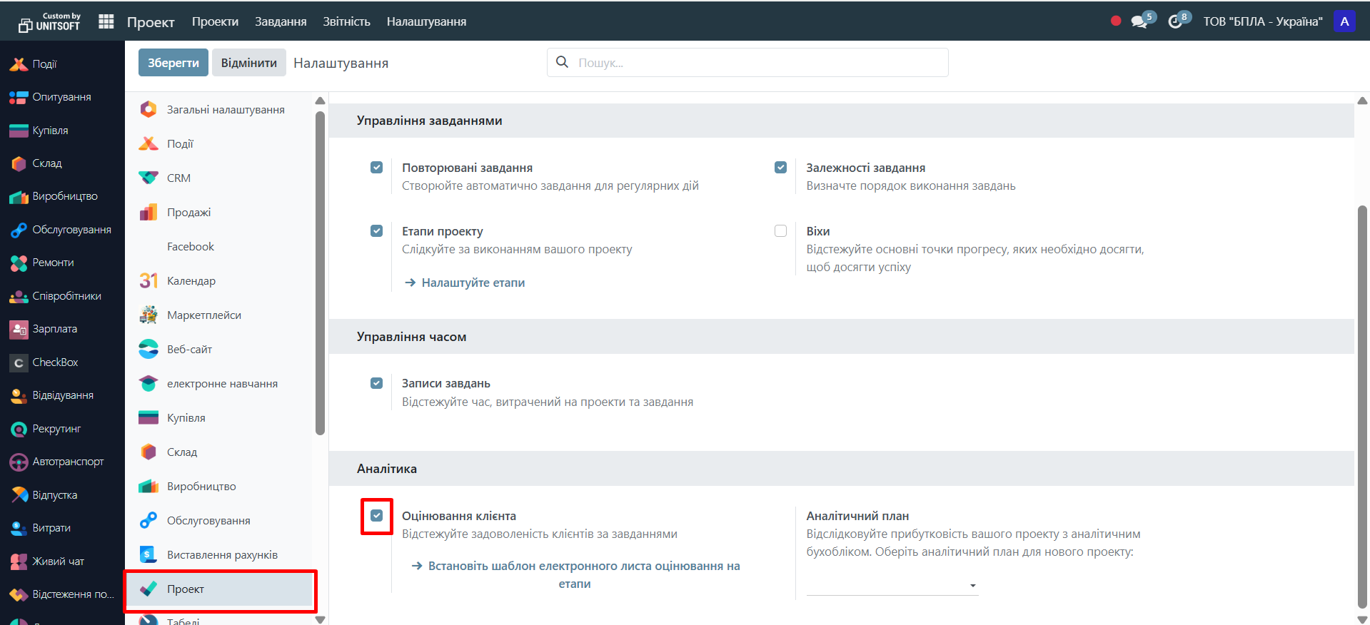 2. У секції «Аналітика» поставте відмітку «Оцінювання клієнта» та збережіть: