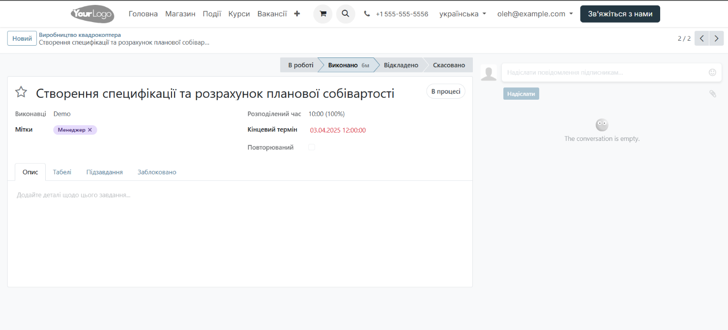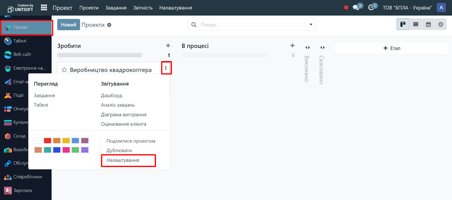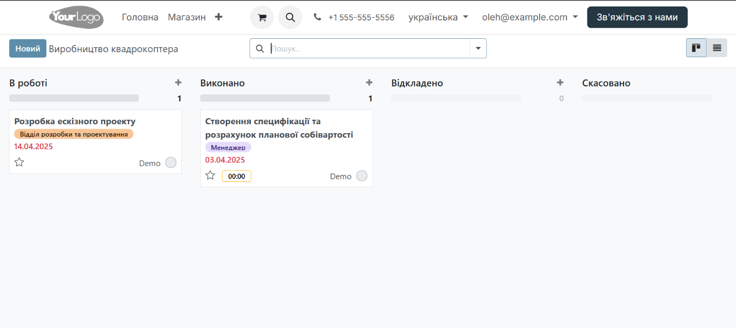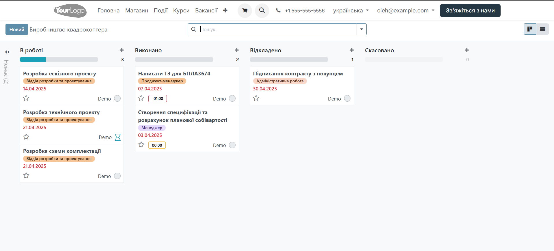 Функція «Поділитися проектом» дозволяє надати доступ до проекту Вашим клієнтам або колегам без необхідності відкривати для них усю систему Odoo.