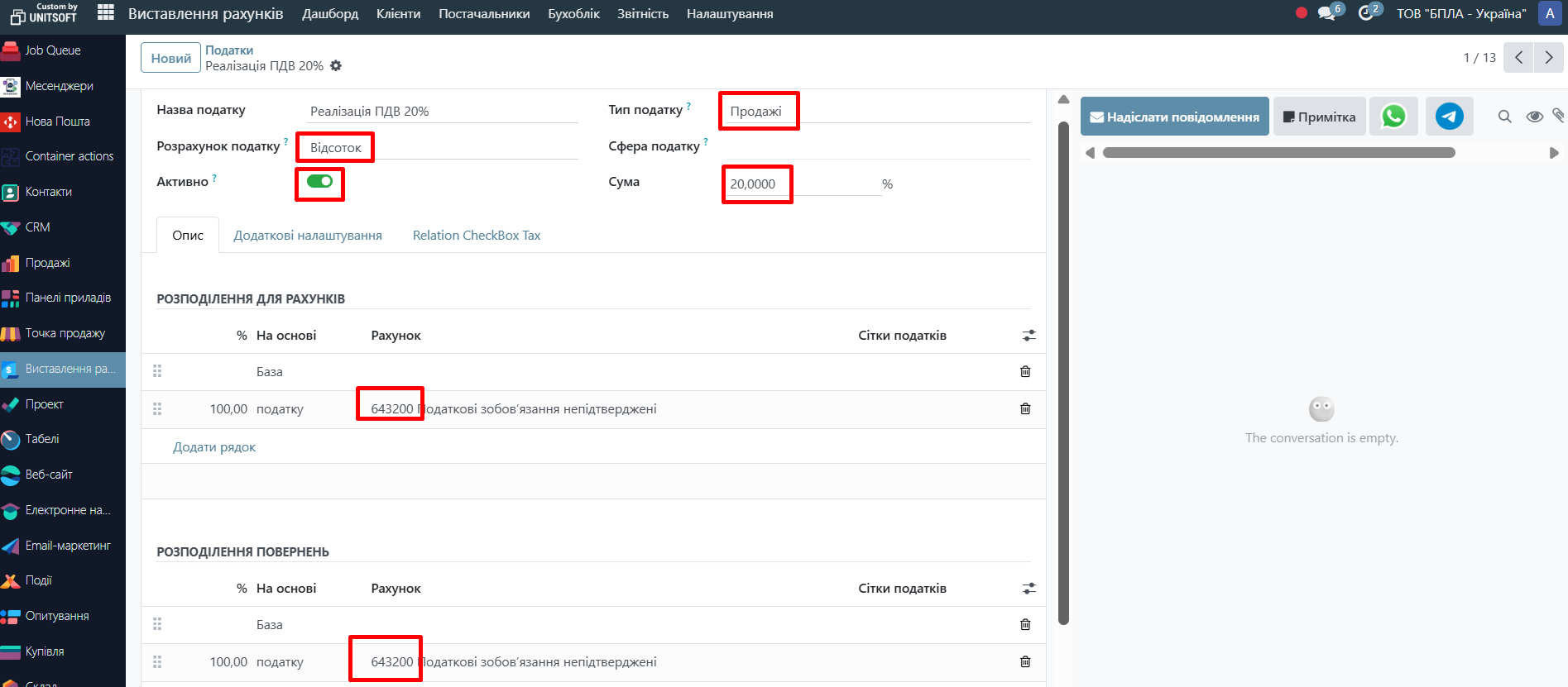 У цьому розділі зберігаються всі податки, які можуть використовуватись у продажах і закупівлях.