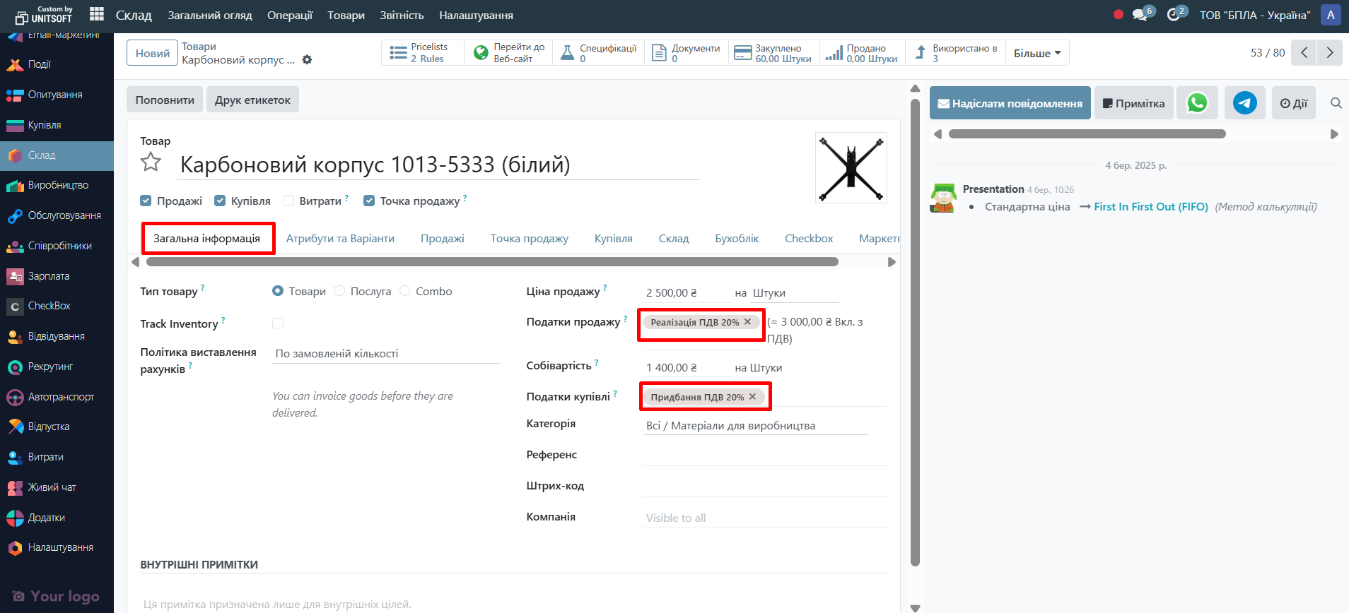В Odoo податки зазвичай створюються автоматично під час встановлення локалізації, однак за потреби їх можна додати або змінити вручну. Нижче розглянемо, де саме вони налаштовуються та як працюють у системі.